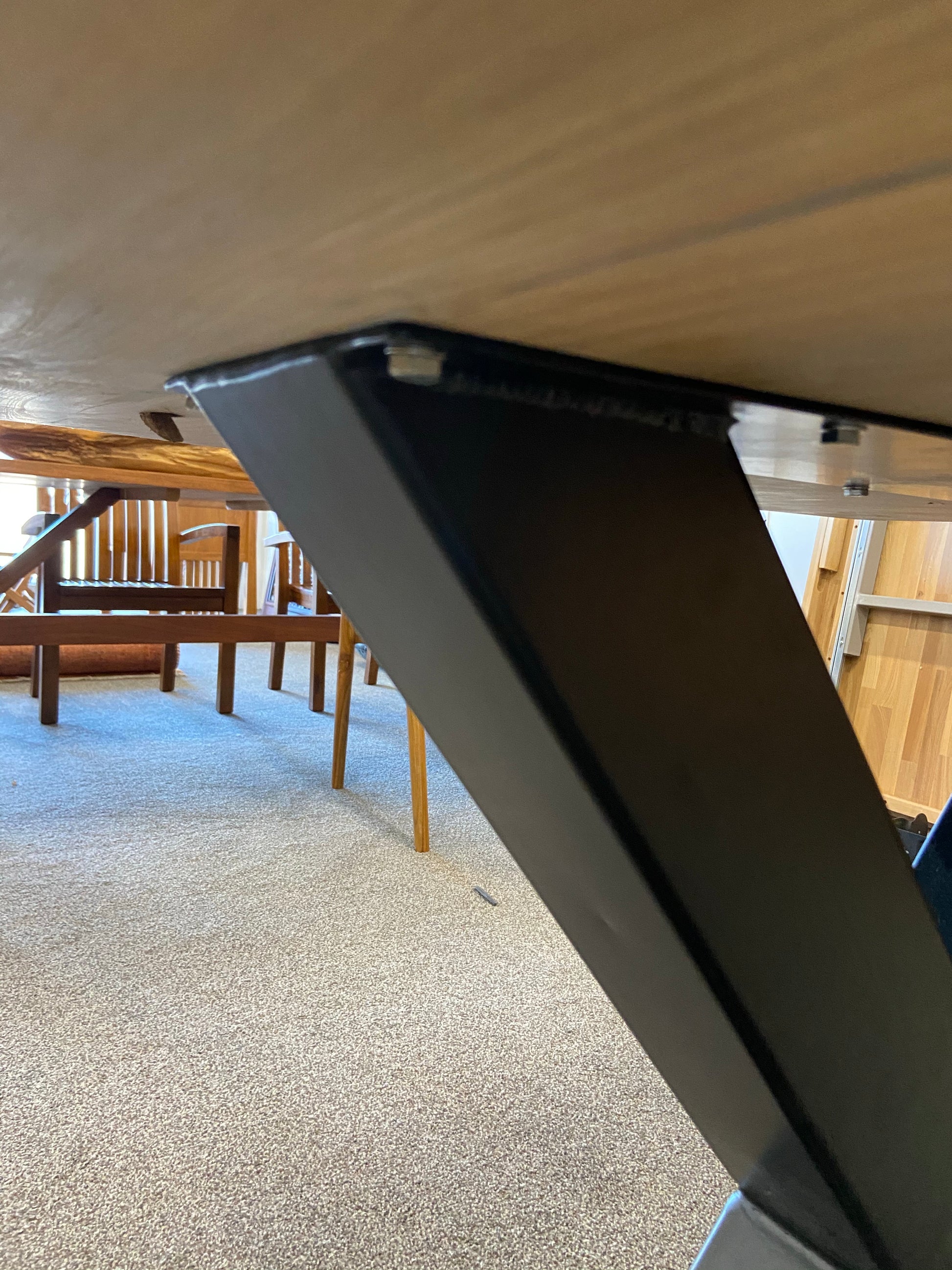 Comes fully assembled be fitted with our quality Steel black trestle Legs .